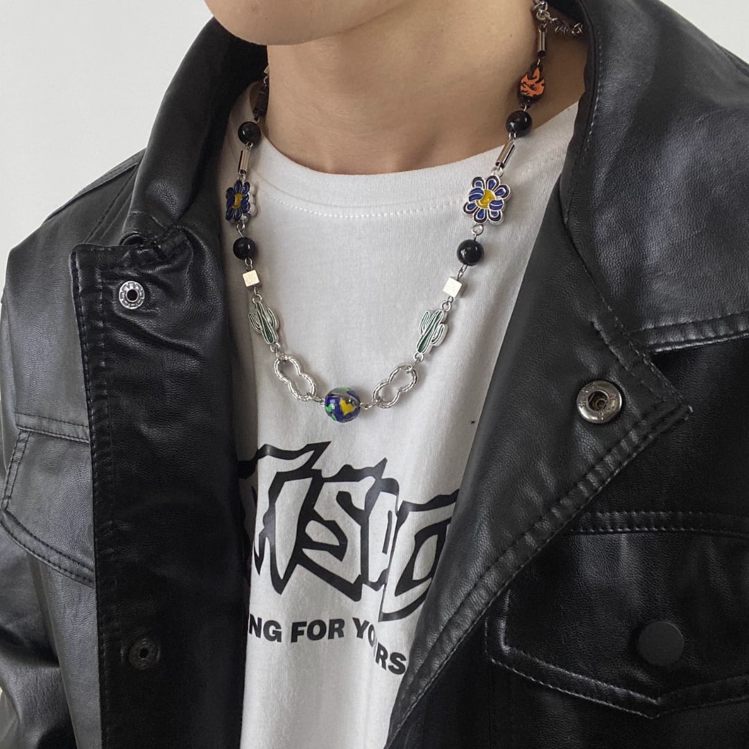 Cactus Planet Necklace – Unisex Hip-Hop Long Chain, Trendy Statement Style (FD024)
