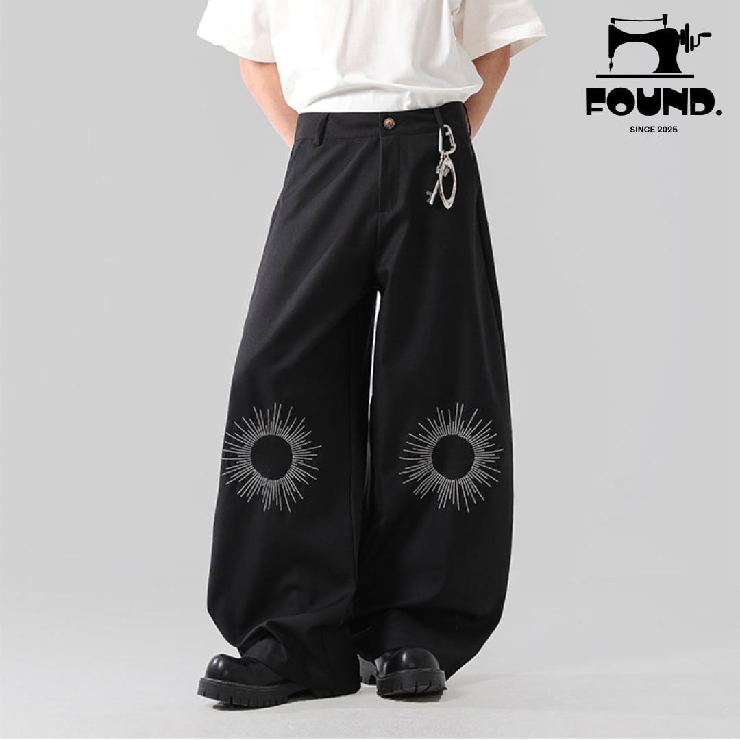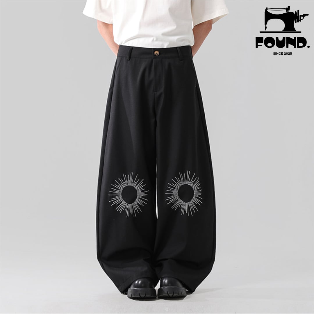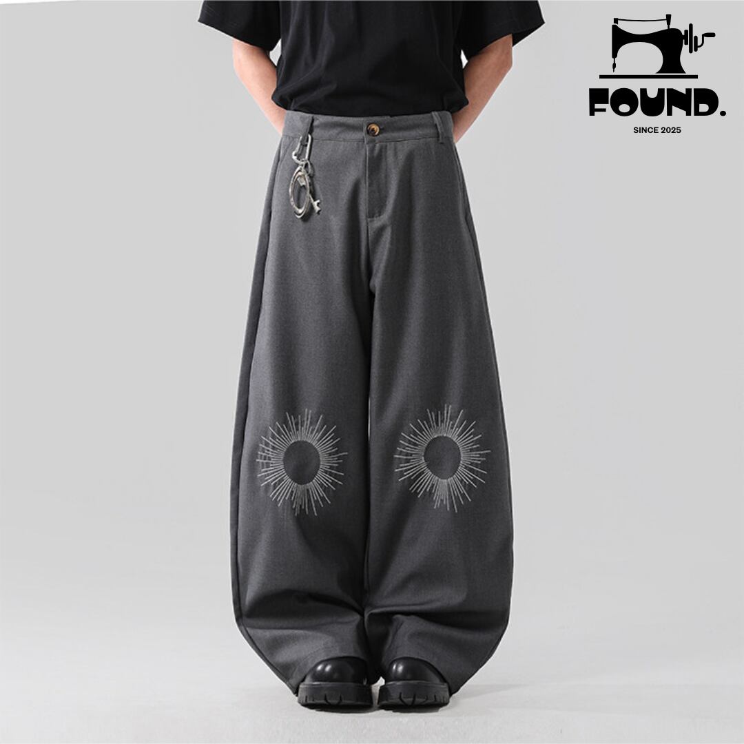 Unisex Wide-Leg Embroidered Deconstructed Trousers – Streetwear Loose Fit Casual Pants(FD150)