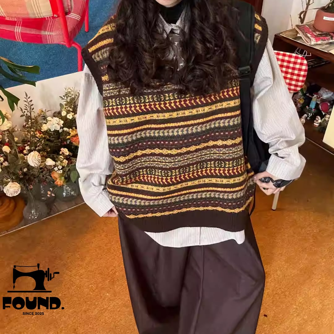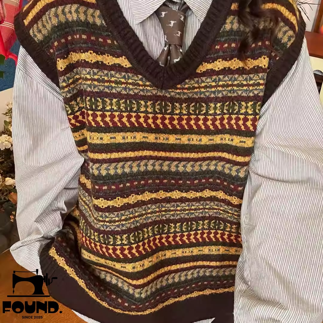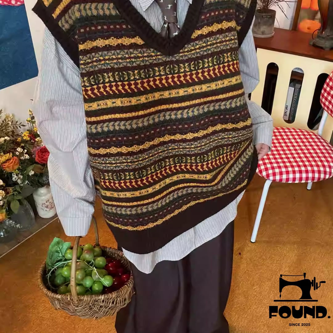 Retro Striped Jacquard V-Neck Sweater Vest -Unisex(FD153)