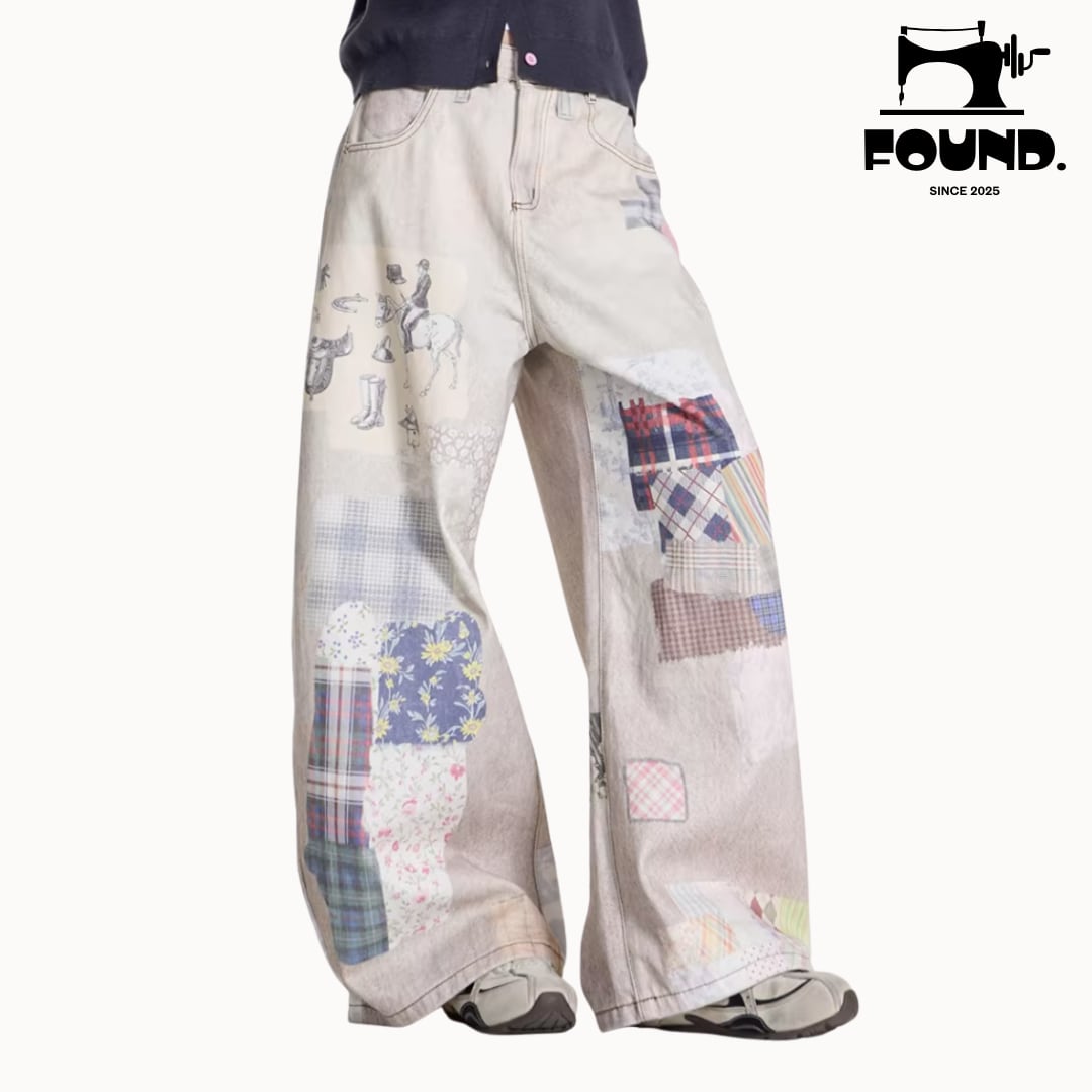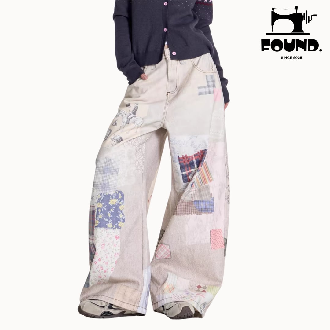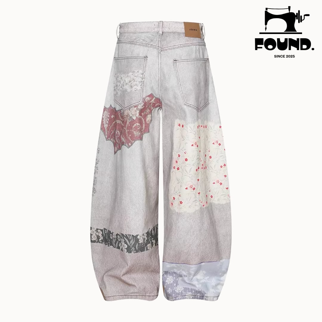 American Retro 3D Graffiti Print Baggy WideJeans(FD179)