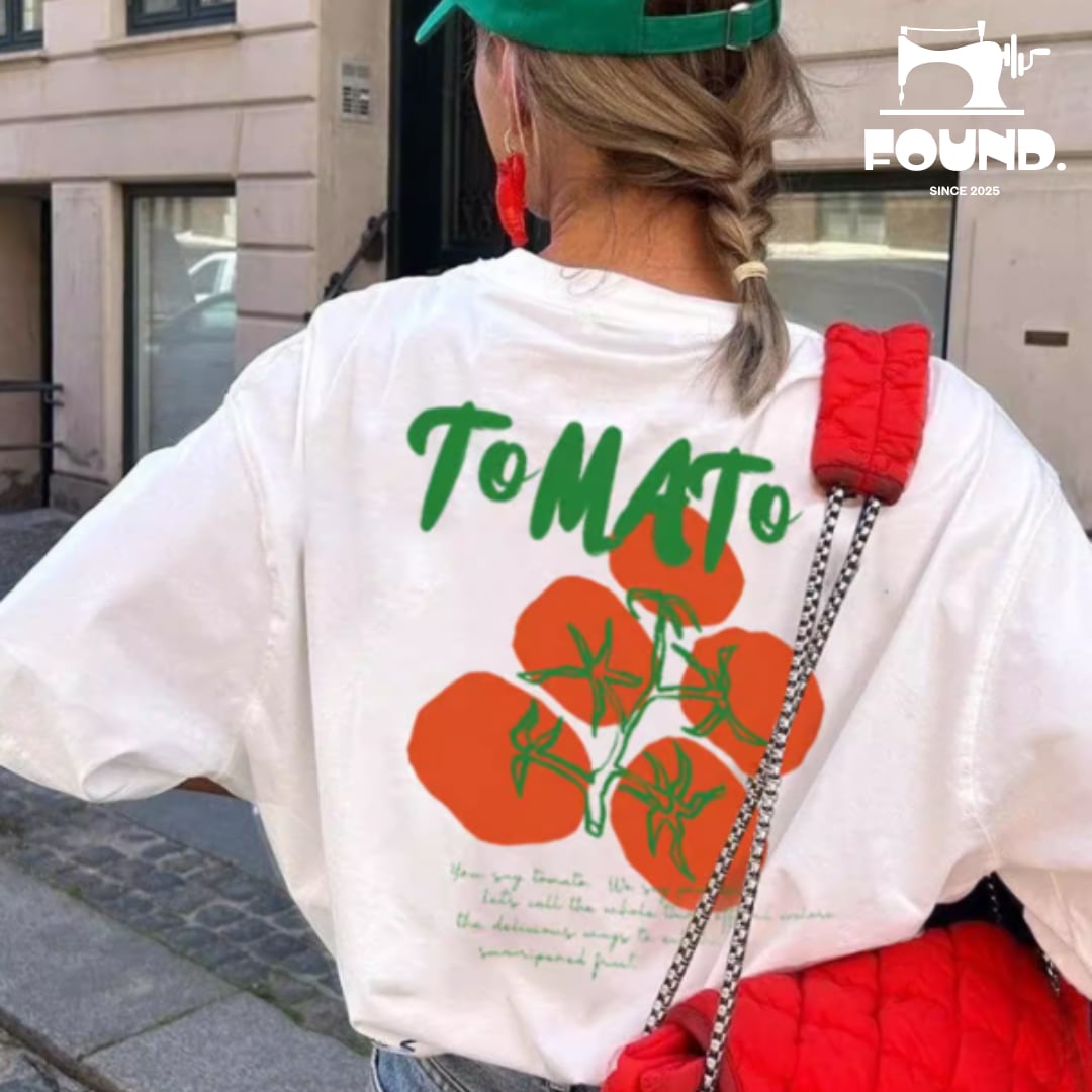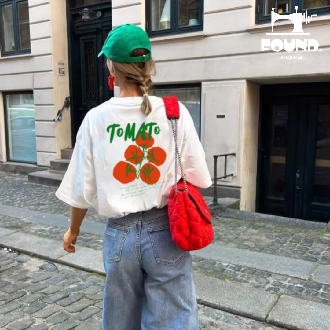 Tomato Print T-Shirt (FD192)は、ユニークなトマトのプリントが特徴的なTシャツです。一目で目を引くデザインは、カジュアルスタイルを一層華やかに演出し、どんなコーディネートにもアクセントを加えます!肌に優しい素材を使用しており、快適な着用感を提供します。特別な日のおしゃれにも、デイリーコーディネートにもピッタリな、個性的なアイテムです。