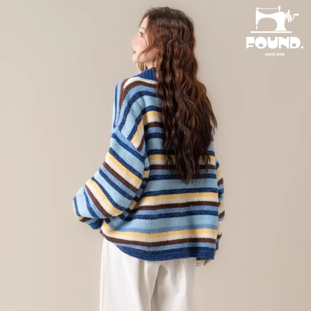 Striped Polo Collar Knit Cardigan(FD212)は、ストライプ柄とポロカラーが特徴のニットカーディガンです。シンプルでありながら、ポロカラーがアクセントとなり、他にはないおしゃれを楽しんでいただけます。柔らかな生地とリラックス感のあるシルエットにより、デイリーコーディネートに最適です。カジュアルなパンツやスカートと合わせることで、様々なシーンで活躍するアイテムとなっています。軽やかな着心地を実感しながら、トレンドを抑えたスタイルを演出してください!