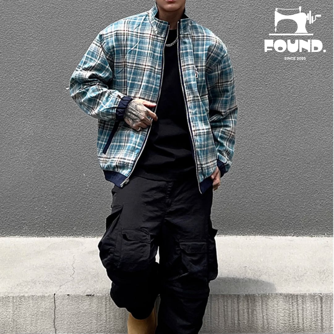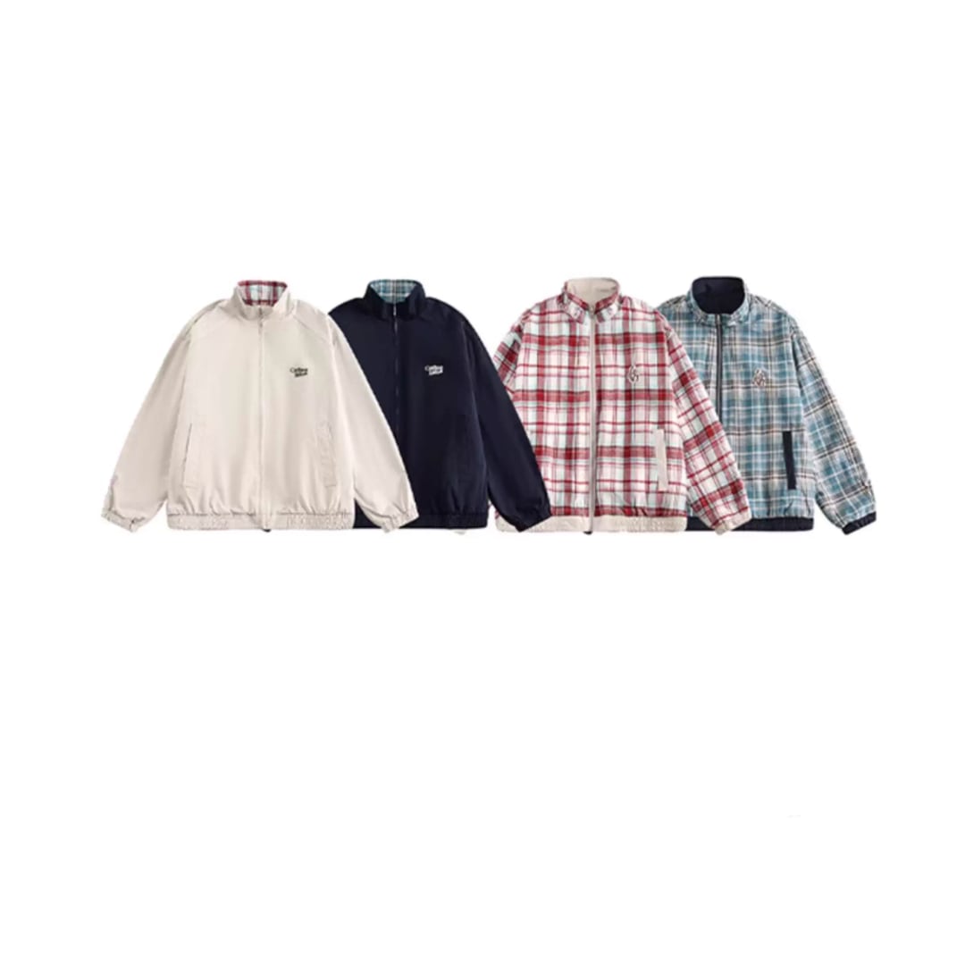 Reversible Plaid Jacket Unisex Oversized Harrington with Stand Collar(FD255)
