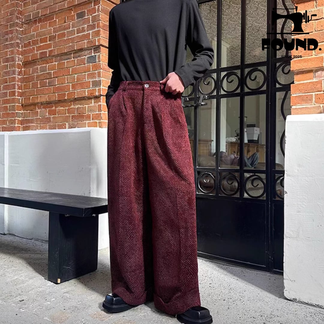 Deep Red Textured Drape Pants(FD281)